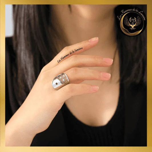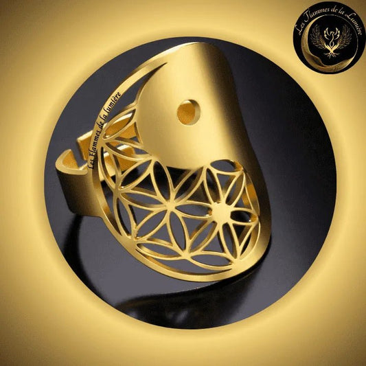 Magnifique Bague ajustable - Fleur de vie - acier inoxydable - géométrie sacrée
